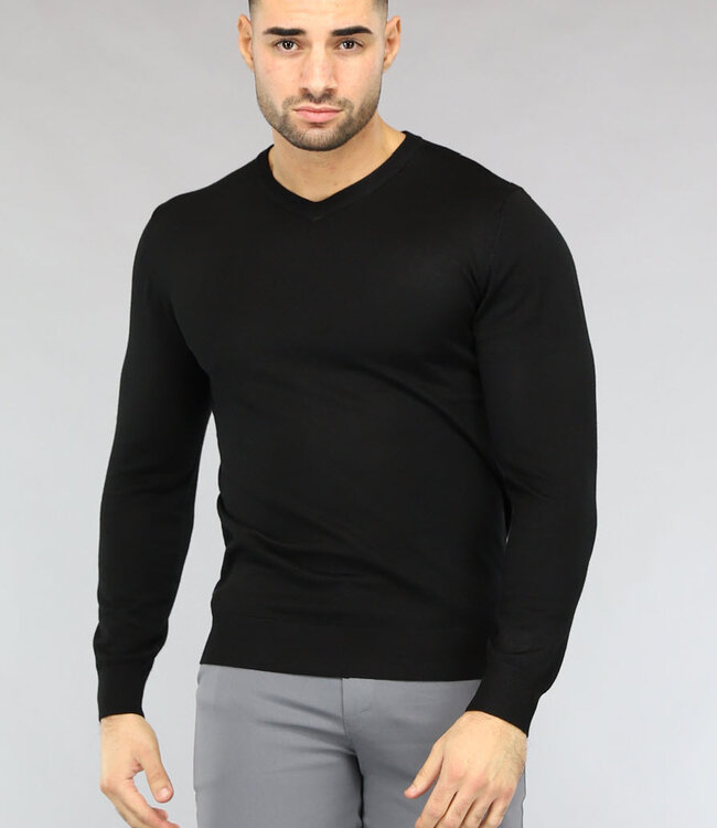Gebreide Heren Pullover met V Hals in Zwart Lees meer.
