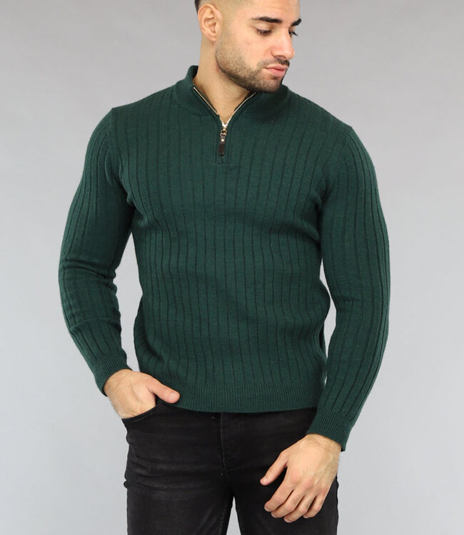 Ribgebreide Heren Jumper in Donkergroen Lees meer.